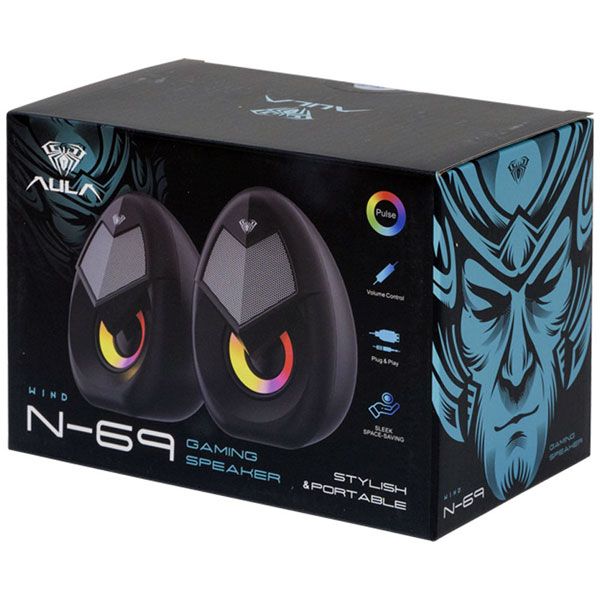 اسپیکر «WIND N-69» ساخته شده توسط شرکت «آئولا» است. این اسپیکر به صورت سیم دار طراحی شده و مناسب برای لپ تاپ و کامپیوتر است. این محصول دارای کابل صدا بوده (جک 3.5 میلی متر) و بوسیله رابط USB تامین انرژی که می توانید کامپیوتر و یا لپ تاپ خود استفاده کنید. این اسپیکر از قدرت صدای بالایی برخوردار است و بوسیله آن می توان از وضوح صدای موسیقی لذت برد. این اسپیکر با وزن کمی که دارد (حدود 430 گرم) قابل حمل بوده و به راحتی میتوان از آن در هر محل استفاده کرد و از صدای واضح آن لذت برد. حجم صدای آن به گونه ای است که به راحتی پاسخگوی نیازهای صوتی مورد نیاز در منزل، مغازه، کافی شاپ و رستورانها، کلاسهای آموزی و موارد مشابه می باشد. نورهای RGB این اسپیکر زیبایی خاصی دارد و اکثر گیمرها برای چیدمان میز کامپیوتر خود دنبال کننده این نوع اسپیکرها هستند.