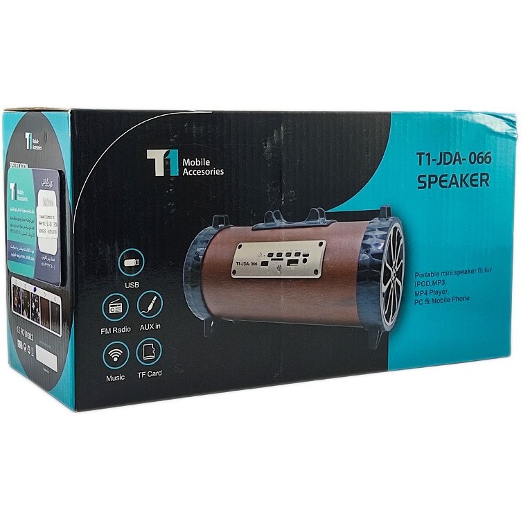 اسپیکر JDA-066 از محصولات شرکت تی وان که تولید ایران است . این اسپیکر از کیفیت ساخت بالایی برخوردار میباشد که به خاطر سبک بودن آن و همچنین صدای عالی که دارد شما میتوانید در هر جایی مثل تولد ، مهمانی بیرون شهر و ... از آن استفاده کنید . این اسپیکر از مواردی چون کارت حافظه ، میکروفون ، فلش ، رادیو و... پشتیبانی می کند . و جای قرار دادن گوشی را دارد