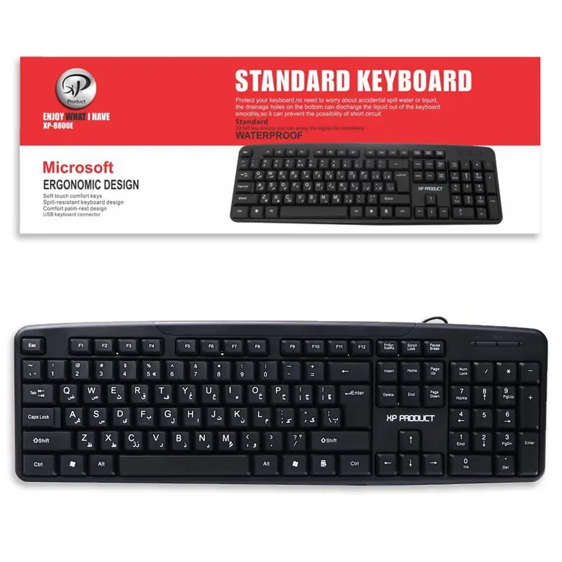 حروف، اعداد و علامتهایی که روی کلیدهای کیبورد XP-8800C حک شدهاند، کاملا بزرگ و شفاف هستند. برای راحتی کاربر تعداد 8 کلید میانبر در بالای صفحه کلید طراحی و قابلیت ضد آب بودن نیز که بسیار کاربردی و عالی میباشد. در این مدل رعایت شد ه است.عمرا بالای این مدل(20 ملیون ضربه) رضایت از خرید شما را چند برابر میکند.